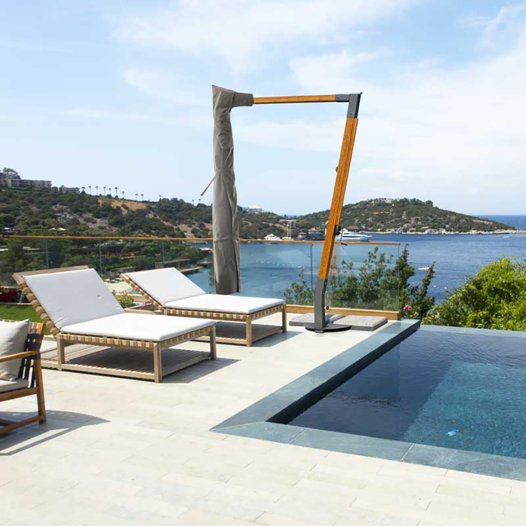 Il fodero per ombrelloni decentrati è realizzato in tessuto MyTex: impermeabile e traspirante.