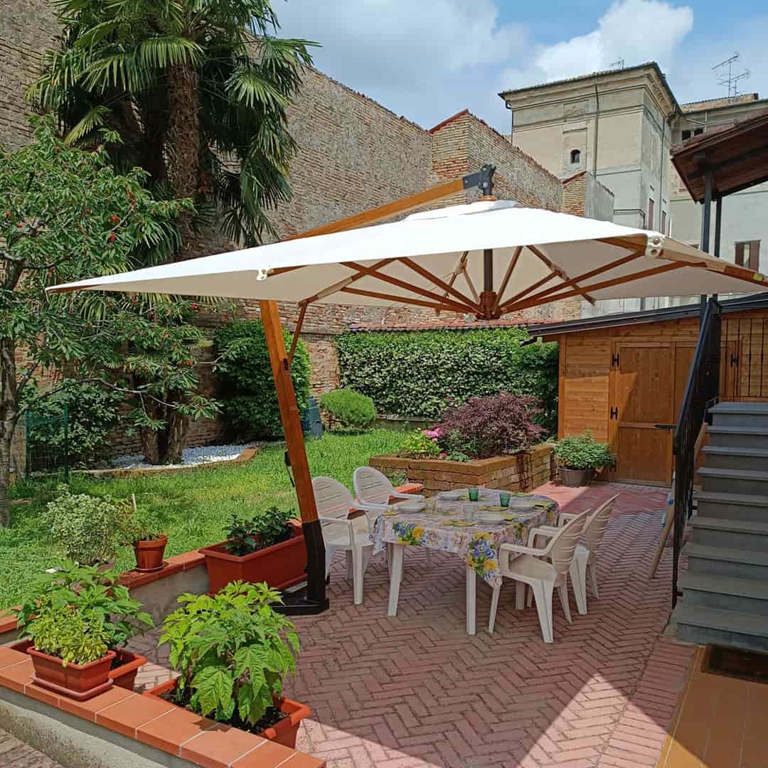 La sistemazione di piante, fioriere ed altri accessori decorativi sulla base valorizza l’estetica dell’ombrellone da giardino e nel contempo contribuisce all’equilibrio e alla stabilità.
